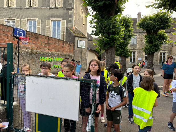 Après être passée au stand technique, pour la vérification des points de sécurité (gonflage des pneus, réglage de la selle, du guidon et contrôle des freins), la troupe des ce2 est partie sous escorte de la gendarmerie d’Avallon en direction de la piste routière de la Morlande.