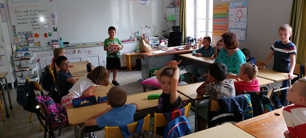Pour finir la semaine, chaque vendredi en fin d’après-midi, nous faisons notre rituel du « Quoi de neuf ?». Un élève propose un objet, une chanson, une activité, une expérience vécue qu’il doit faire découvrir à ses camarades. Cela permet d’échanger et de découvrir des choses très intéressantes.