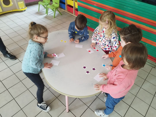 Nous avions chacun une gommette de forme et de couleur différentes. Et nous avons vu que plus nous étions différents, plus l'ensemble était joli !