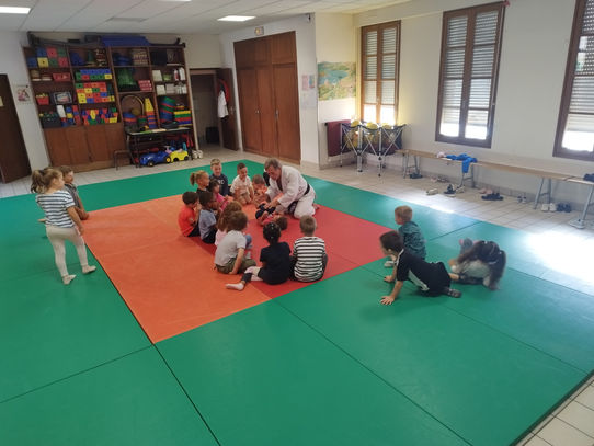 Avec nos camarades de grande section de la classe de Gwenola GRESSARD, nous avons participé à une séance d’initiation au Judo animée par Jean-Pierre RENAULT.